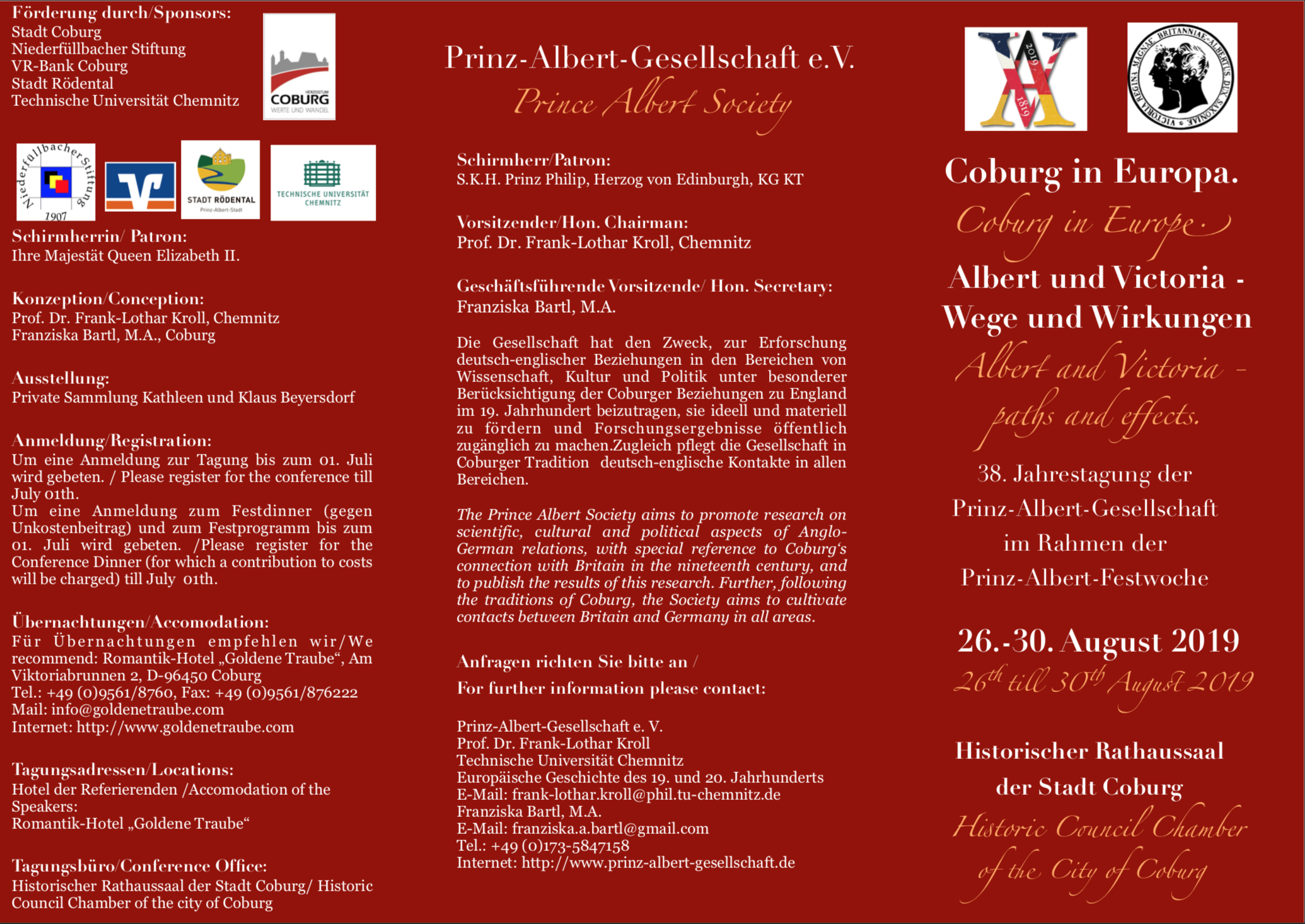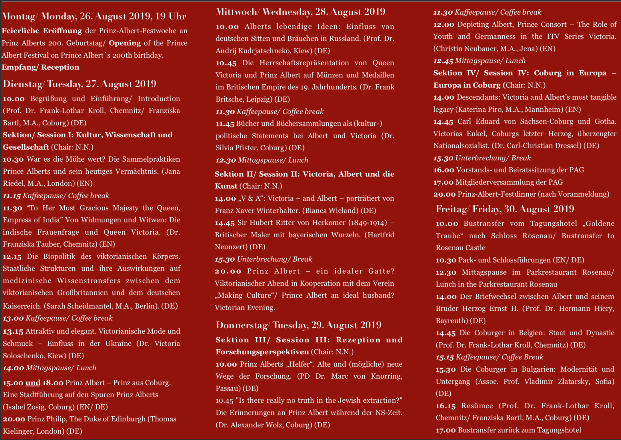 Interessierte Zuhörerinnen und Zuhörer sind herzlich willkommen. Der Eintritt ist frei. Aus organisatorischen Gründen bitten wir jedoch um Anmeldung unter: prinzalbertgesellschaft@gmail.com.